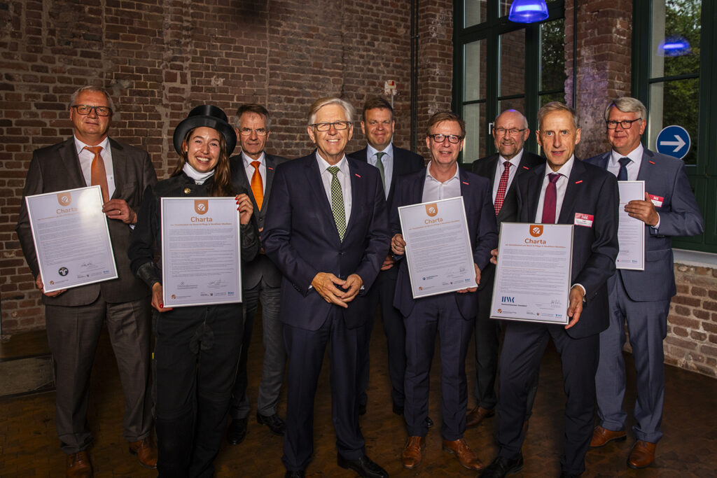 Im Rahmen des 5. Ruhr Forums Handwerk haben die Handwerkskammern Dortmund, Düsseldorf und Münster sowie der Landesfachverband des Schornsteinfegerhandwerks NRW vergangene Woche die Charta zur Vereinbarkeit von Beruf & Pflege unterzeichnet. Matthias Heidmeier, Staatssekretär im Ministerium für Arbeit, Gesundheit und Soziales des Landes Nordrhein-Westfalen, überreichte die Urkunden persönlich. „Angesichts des demografischen Wandels mit Arbeits- und Fachkräftemangel ist es von großer Bedeutung, dass sich Erwerbstätigkeit und Pflege von Angehörigen miteinander in Einklang bringen lassen“, so der Staatssekretär. „Als Baustein der Fachkräfteoffensive NRW dient das Landesprogramm zur Vereinbarkeit von Beruf und Pflege der Fachkräftebindung, es stabilisiert die häusliche Pflege und entlastet erwerbstätige pflegende Angehörige.