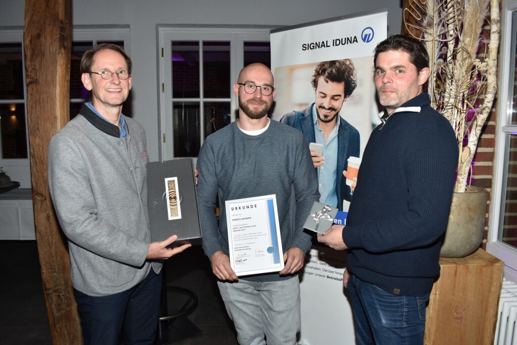 Herzliche Gratulationen von den Vertretern der Modellbauer-Innung für die Handwerkskammerbezirke Dortmund und Münster gab es am Dienstag für Patrick Skorupa aus Herbern (Ascheberg). Der 31-jährige frischgebackene Technische Modellbauer, Fachrichtung Gießerei, hatte als bester Auszubildender im Juni die Gesellenprüfung 2022 abgelegt. Bei der Mitgliederversammlung der Innung im Gasthaus Frenking (Frenkings Tenne) in Ascheberg erhielt er aus den Händen von Obermeister Frank Grewer-Czytkowski und Lehrlingswart Fabian Strohmann die Ehrenurkunde der Innung und ein Präsent. „Das Handwerk braucht gute Fachkräfte“, so der Obermeister in seiner Laudatio. „Ihnen stehen nach Ihrem Abschluss nun alle Karrierewege offen. Nutzen Sie Ihre Chance für eine gesicherte berufliche Zukunft. Herzlichen Glückwunsch im Namen aller Innungskollegen!“