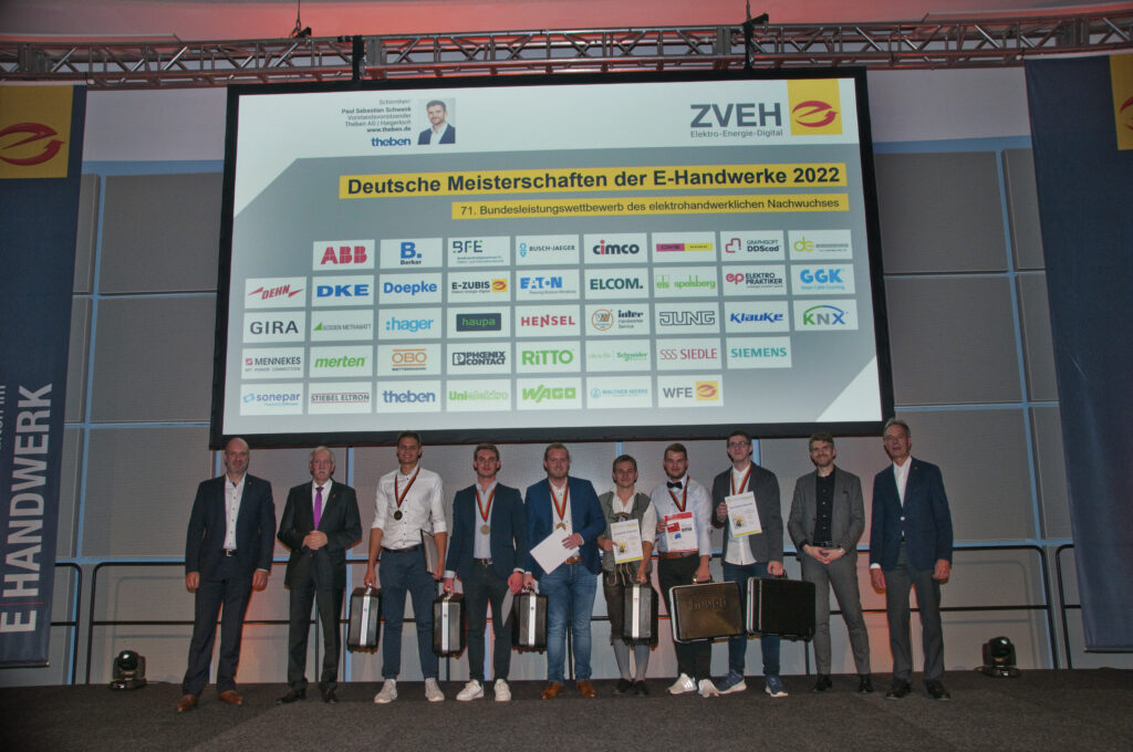 Alljährlich treten beim Bundesleistungswettbewerb in Oldenburg die Landessieger aus sieben elektrohandwerklichen Berufen gegeneinander an. Vergangenes Wochenende (10.-13.11.) war es wieder so weit: Die Besten der Besten wurden ermittelt und im Rahmen eines großen Festabends geehrt. Anwesend war auch der Schirmherr der 71. Deutschen Meisterschaften der E-Handwerke: Paul Sebastian Schwenk, Vorstandsvorsitzender der Theben AG.