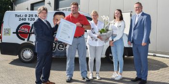Herzliche Glückwünsche anlässlich des 25-jährigen Meisterjubiläums gab es am Freitag für den Selmer Elektroinstallateurmeister Clemens Lange. Der Obermeister der Innung für Elektrotechnik Dortmund und Lünen, Volker Conradi, und Geschäftsführer Joachim Susewind waren eigens aus Dortmund gekommen, um die Glückwünsche des Handwerks persönlich zu überbringen. Im Gepäck hatten sie neben Präsenten der Innung auch den Silbernen Meisterbrief, den die Vertreter des Handwerks dem Jubilar feierlich überreichten. „Sie haben es mit Fleiß und Können geschafft, sich einen eigenen Betrieb aufzubauen, der seit vielen Jahren erfolgreich in der Region etabliert ist“, gratulierte der Obermeister. „Wer seit so vielen Jahren am Markt ist, hat sich das Vertrauen seiner Kunden durch hohe Qualität verdient. Das zeichnet sie als Innungsbetrieb besonders aus. Wir wünschen Ihnen weiterhin viel Glück und Erfolg in Ihrem Handwerk.”