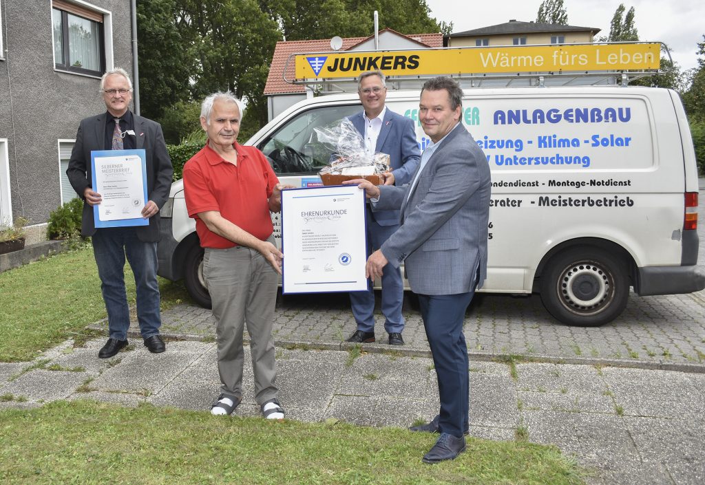 Hohen Besuch von der Innung für Sanitär, Heizungs- und Klimatechnik Dortmund und Lünen bekam jetzt die Firma Andreas Berg Haustechnik Am Westheck in Dortmund-Brackel. Obermeister Ralf Marx ließ es sich nicht nehmen, Geschäftsinhaber Andreas Berg persönlich zum 25-jährigen Bestehen seines Unternehmens zu gratulieren. „Ein Vierteljahrhundert erfolgreiches Arbeiten im Handwerk sind der Beweis für großes Können und hohe Qualität“, so Ralf Marx bei der Übergabe der Ehrenurkunde der Innung. „Ich wünsche Ihnen und Ihren Mitarbeitern im Namen der gesamten Innung auch weiterhin viel Erfolg bei Ihrer Arbeit.“