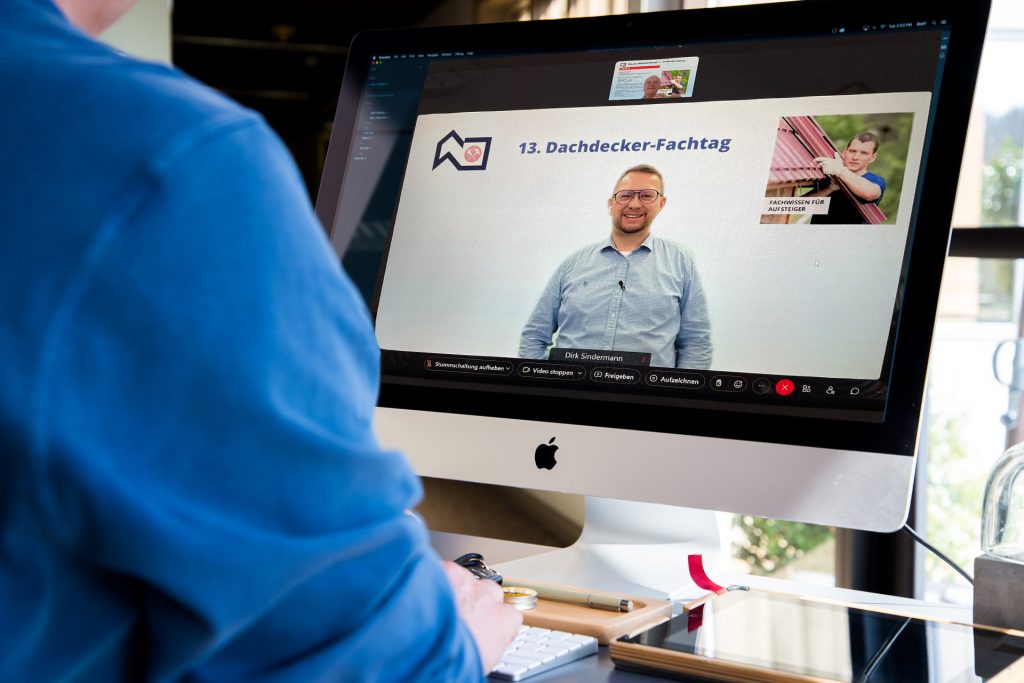 Nach dem Erfolg des vergangenen Jahres hatte die Dachdecker-Innung Dortmund und Lünen auch für 2022 ihre Mitglieder erneut zum traditionellen Dachdecker-Fachtag mit Bildschirm und Beamer eingeladen. Rund 35 Teilnehmerinnen und Teilnehmer meldeten sich zum 13. Branchentreff per PC und Webcam an. Auf dem Programm standen am 12. Februar insgesamt vier Stunden fachlicher Austausch mit geballtem Wissen rund um das Dachdecker-Handwerk.