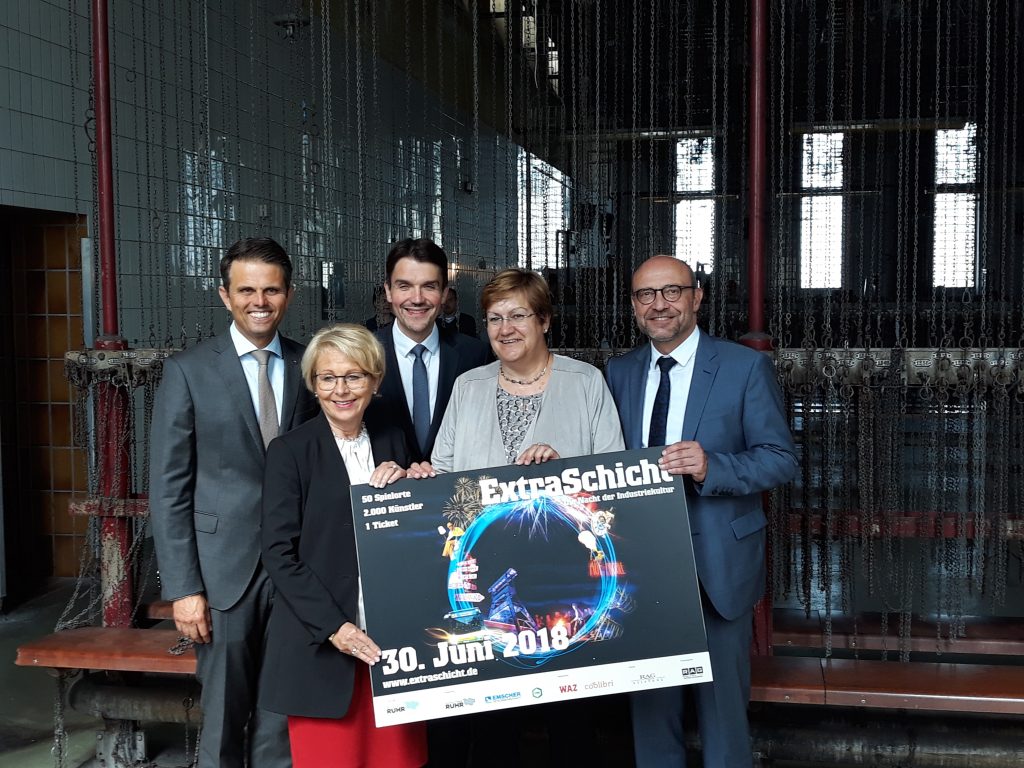 22 Städte, 50 Spielorte, 2.000 Künstler: Das sind die Eckdaten der ExtraSchicht 2018, die am 30. Juni zum 18. Mal gefeiert wird. Einen thematischen Schwerpunkt bildet in diesem Jahr das Ende des deutschen Steinkohlebergbaus. So führen Bergleute, Koker und Stahlarbeiter die Gäste an ihre ehemaligen Wirkungsstätten, in Stollen oder Keller, hinauf auf Hochöfen, Dächer und Fördergerüste. Daneben locken die Spielorte mit Laser-, Feuer- und Pyroshows, Akrobatik, Comedy, Mitmach-Aktionen, Sonderführungen, Lesungen und Aufführungen.