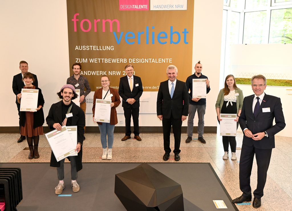Im Rahmen einer Feierstunde am 11.10.2020 zeichnete der Westdeutsche Handwerkskammertag (WHKT) mit Unterstützung des Ministeriums für Wirtschaft, Innovation, Digitalisierung und Energie des Landes NRW die Preisträgerinnen und Preisträger des Wettbewerbs »DesignTalente Handwerk NRW 2020« in der Handwerkskammer Düsseldorf aus.