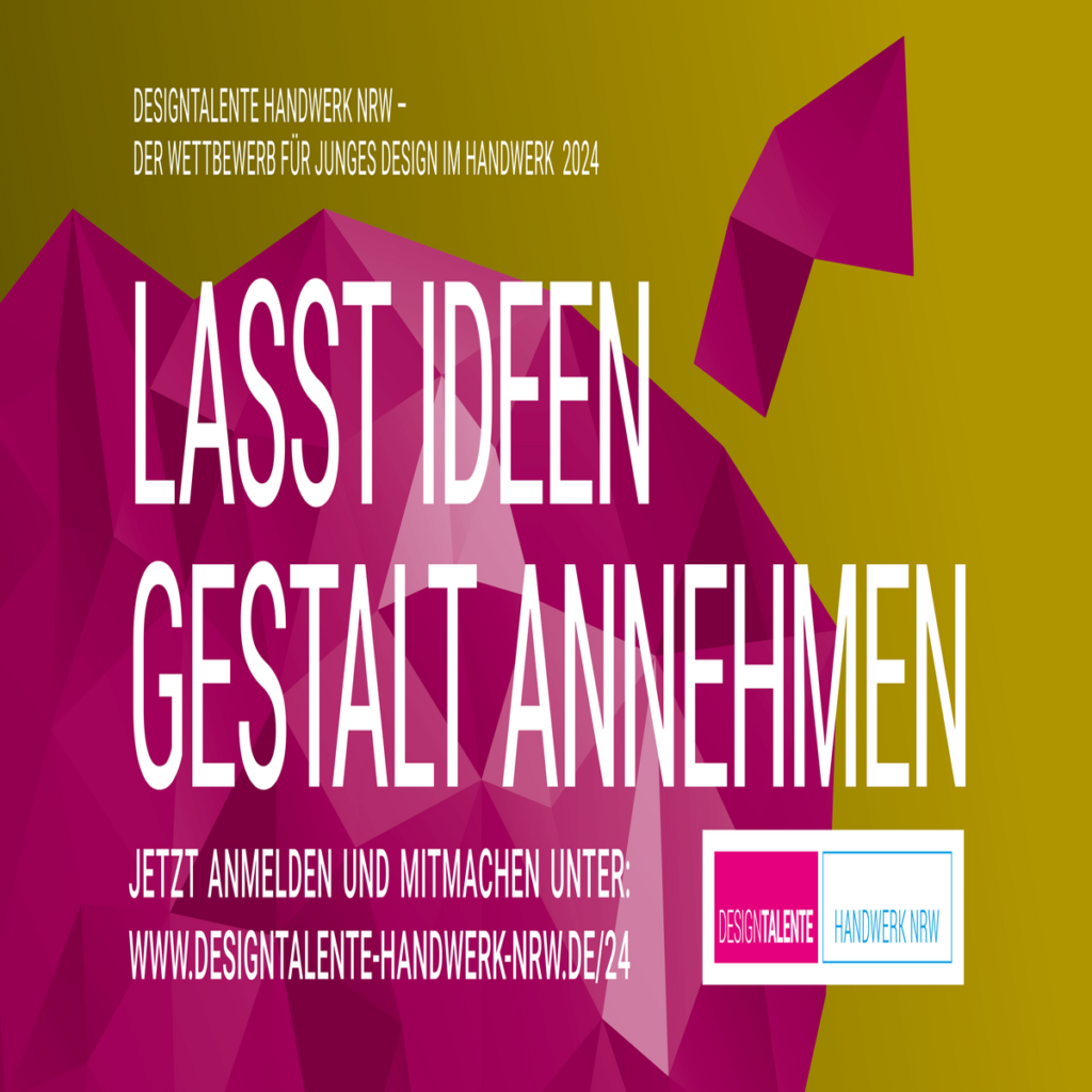 Fotos der selbst gestalteten Arbeiten online noch bis zum 02. Juni 2024 unter www.designtalente-handwerk-nrw.de hochladen, teilnehmen und mit Talent überzeugen.