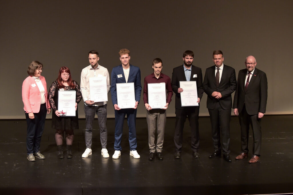 (Auf dem Foto fehlen Landessiegerin Wiebke Vollmer, Technische Modellbauerin, Fachrichtung Anschauung, und Landessieger Maurice Schoof, Karosserie- u. Fahrzeugbaumechaniker, Fachrichtung Karosserieinstandhaltungstechnik)