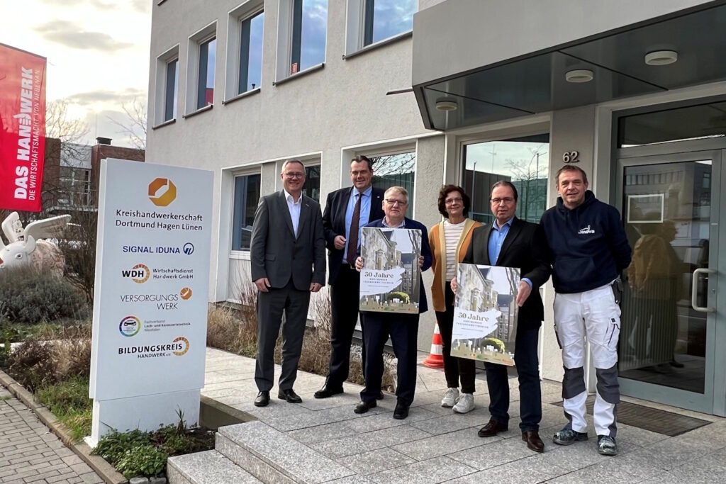 Foto von links: – Joachim Susewind – Kreishandwerkerschaft Dortmund Hagen Lünen, Frank Hengstenberg – EDG Dortmund, Bürgermeister Norbert Schilff – Stadt Dortmund, Susanne Neuendorf – DMB Mieterbund Dortmund e.V. Mieterschutzverein, Oliver Schulz – Sparkasse Dortmund, Matthias Behr – Maler- und Lackierer-Innung Dortmund und Lünen