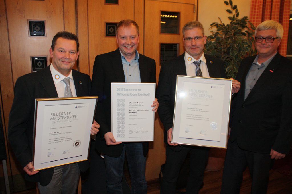 - Obermeister Ralf Marx konnte auf sein Silbernes Meisterprüfungsjubiläum im Zentralheizungs- und Lüftungsbauerhandwerk zurückblicken. Er hat exakt am 02.06.1992 seine Meisterprüfung, im Übrigen seine 2. neben der Meisterprüfung im Gas- und Wasserinstallateurhandwerk, in Dortmund abgelegt.