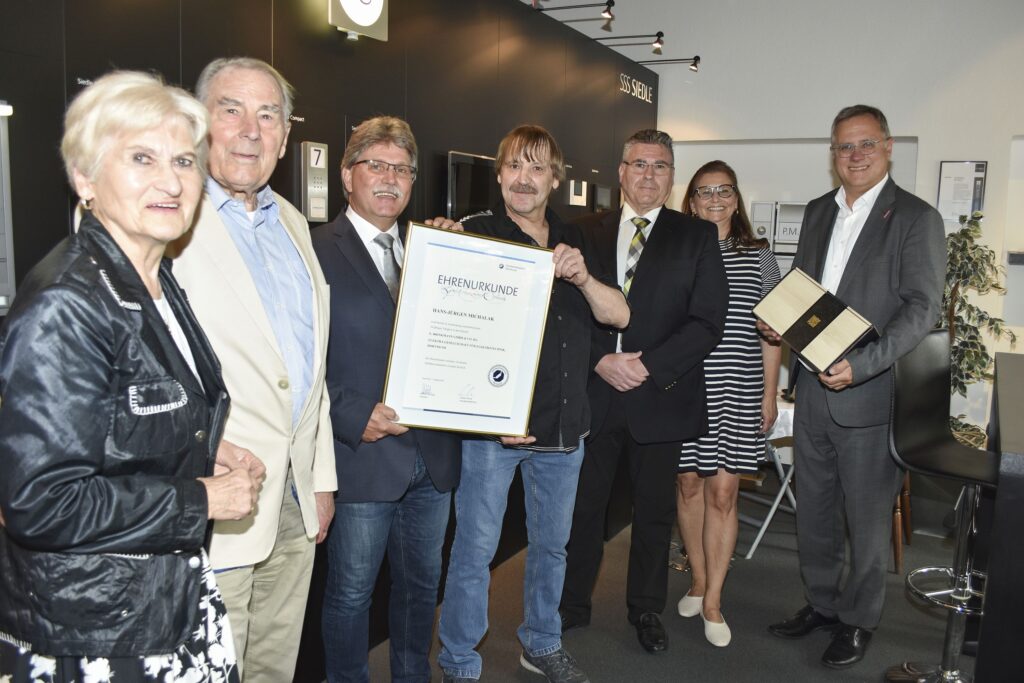 Hans-Jürgen Michalak kann auf 50 Jahre Betriebszugehörigkeit bei der Elektra Brinkmann GmbH & Co. KG zurückblicken / Obermeister und Geschäftsführer der Innung für Elektrotechnik Dortmund und Lünen gratulieren herzlich zum außergewöhnlichen Jubiläum