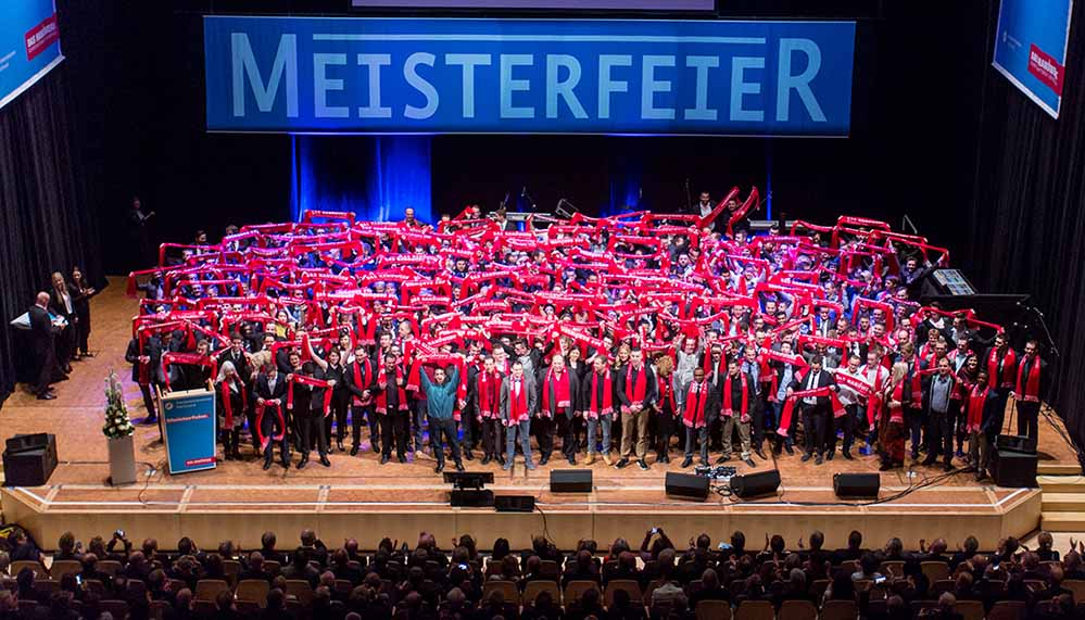 HWK-Präsident Schröder gratulierte den „Allround-Talenten“, die nicht nur mit fachlichem Wissen glänzen würden, sondern auch in der Lage seien, ein Unternehmen zu führen und Nachwuchskräfte auszubilden. „Sie, liebe Meisterinnen und Meister, sind nun die Elite unseres Wirtschaftsbereichs, die Führungs- und Leistungskräfte von morgen. Und als solche stehen Sie für die hohe Qualität des Handwerks.“ Der Meisterbrief garantiere sogar in doppelter Hinsicht die hohen Standards, da er nicht nur für die Qualität von Produkten und Dienstleistungen, sondern auch die hochwertige Ausbildung des eigenen Nachwuchses stehe.