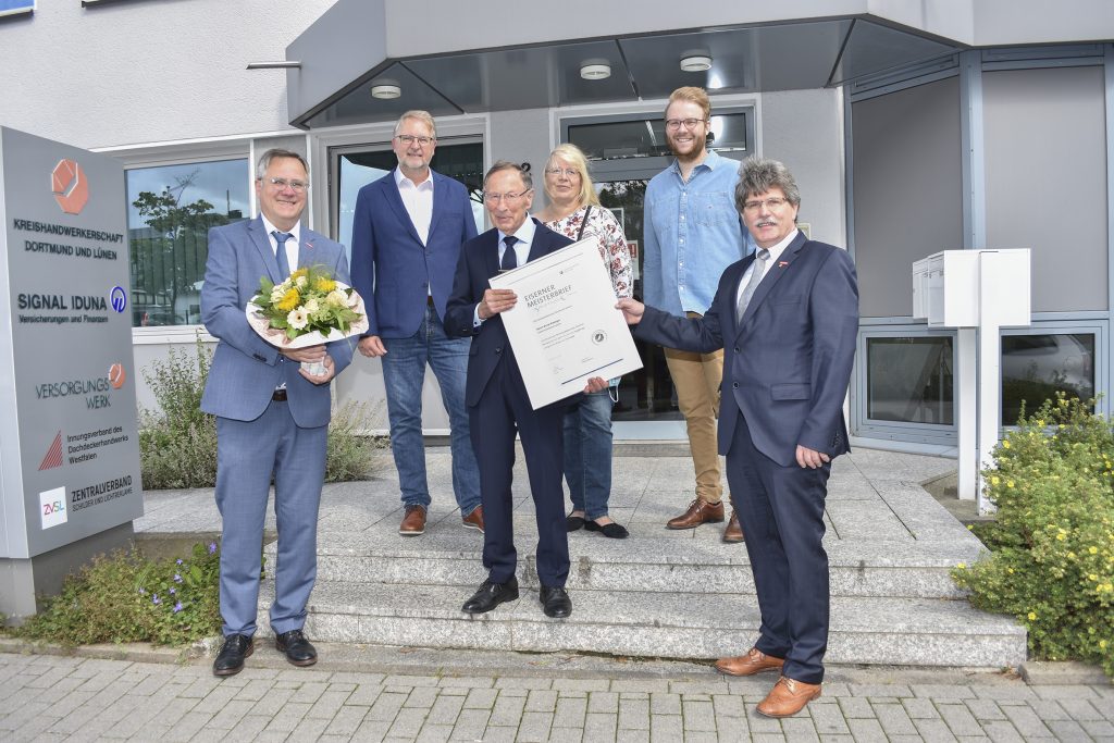 Elektroinstallateurmeister legte vor 65 Jahren seine Meisterprüfung ab / Obermeister und Geschäftsführer der Innung für Elektrotechnik Dortmund und Lünen überreichen feierlich Urkunde zum Jubiläum