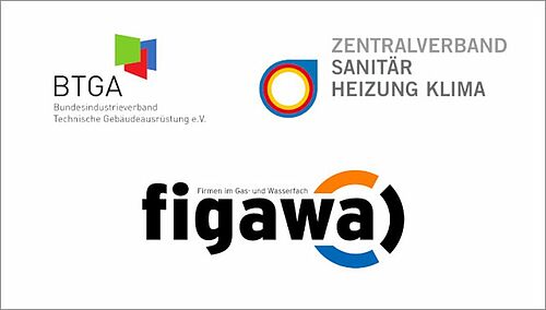 | BTGA Bundesindustrieverband Technische Gebäudeausrüstung e.V. Hinter Hoben 149 | figawa Bundesvereinigung der Firmen im Gas- und Wasserfach e.V. Marienburger Straße 15 | ZVSHK Zentralverband Sanitär Heizung Klima Rathausallee 6 |