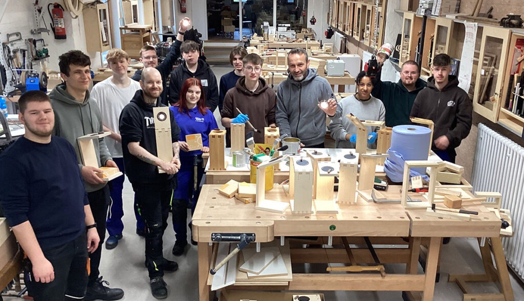 Unterstützt wurde die Zwischenprüfung außerdem von dem Lackhersteller Adler, der neben einem Sponsoring für die Solarmodule den Auszubildenden noch einige Tipps zur möglichen Oberflächenbehandlung ihrer Nachttischleuchten aus Ahorn mit auf den Weg gab. „Wir freuen uns, dass das Prüfungsstück bei den Auszubildenden so gut angekommen ist und es viele auch zu Hause weiter verwenden möchten“, sagt Heico Cuwalsky, Verkaufsleiter bei Adler Lacke.