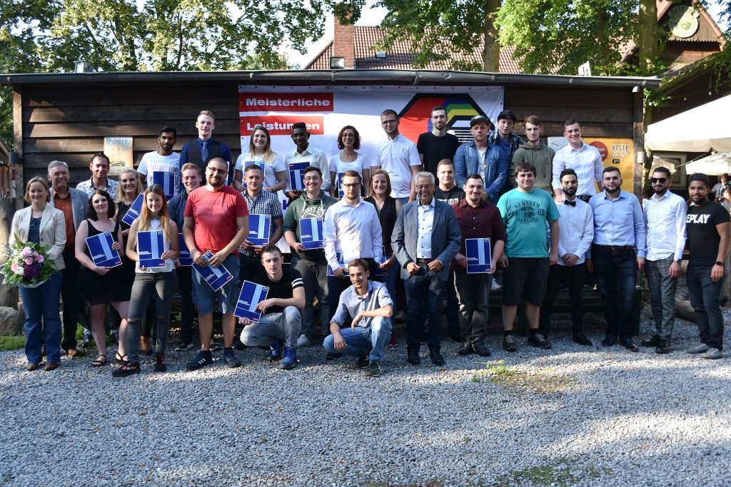 Mit einer großen Feier hat das Fahrzeuglackiererhandwerk am Freitag 52 Auszubildende in den Gesellenstand erhoben. Heinz-Bernd Raue, Vorsitzender der Fachgruppe Lack- und Karosserietechnik Westfalen, begrüßte die rund 100 anwesenden Gäste, darunter zahlreiche Freunde und Eltern der Auszubildenden, sehr herzlich im Road Stop Münster. „Sie haben in Ihrer Ausbildung ihr Bestes gegeben und haben ihre Ziele erreicht“, so der Vorsitzende. „Im Handwerk werden dringend Fachkräfte gesucht und Sie haben mit ihrer Ausbildung einen richtigen Schritt hin zu einer erfolgreichen beruflichen Laufbahn gemacht.” Nach der feierlichen Freisprechung übergaben Heinz-Bernd Raue und Lehrlingswart Stefan Nathaus die Zeugnisse an die frischgebackenen Gesellinnen und Gesellen der Winter- und Sommergesellenprüfung und gratulierten herzlich zum erfolgreichen Abschluss. Eine ganz besondere Ehrung bekamen anschließend die Prüfungsbesten des Fahrzeuglackiererhandwerks. Es sind: