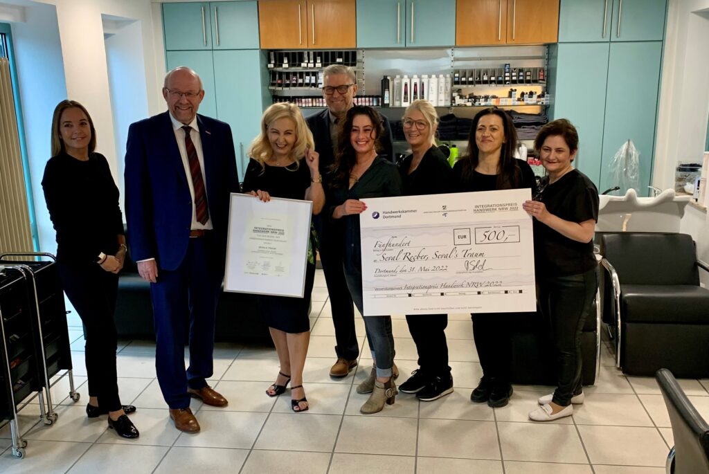 Dortmund. Seit über 36 Jahren macht sich die Dortmunder Friseurmeisterin Seval Reçber für gute Ausbildung stark. Für ihr großartiges Engagement erhielt sie heute den „Integrationspreis des Handwerks NRW“, der gemeinschaftlich von der Handwerkskammer, dem Westdeutschen Handwerkskammertag (WHKT) sowie dem NRW-Integrationsministerium vergeben wird. Berthold Schröder, Präsident der Handwerkskammer (HWK) Dortmund und des WHKT, überreichte die Urkunde. „Sie geben jungen Menschen mit Migrationshintergrund eine Chance, auch denen mit einer schwierigen Geschichte. Dafür möchten wir Sie heute auszeichnen. Denn Integration funktioniert am besten über die berufliche Bildung und im Handwerk können wir das besonders gut“, so der Kammer-Präsident.