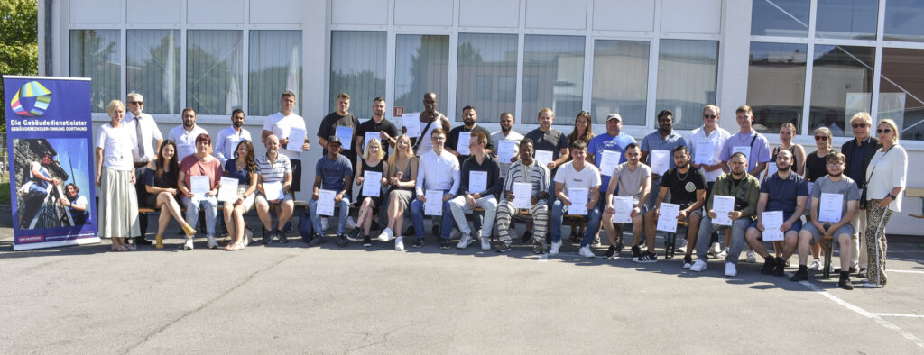 Die Gebäudereiniger-Innung Dortmund hat am Samstag in ihrer Schulungsstätte in Dortmund-Körne insgesamt 55 Auszubildende in den Gesellenstand erhoben. Stephanie Just, stellvertretende Obermeisterin der Innung, begrüßte die anwesenden Gäste und Ehrengäste, darunter auch den Festredner des Tages, den Geschäftsführer des Landesinnungsverbandes des Gebäudereinigerhandwerks NRW, Bernhard Nordhausen, sehr herzlich und gratulierte den Absolventinnen und Absolventen. „Mit seinen rund 700.000 Beschäftigten in fast 26.000 Betrieben ist das Gebäudereiniger-Handwerk das beschäftigungsstärkste Handwerk in Deutschland. Wir sind eine große Gemeinschaft, ein starkes Team und ein wichtiger Wirtschaftsfaktor. Und ab heute, liebe Gesellinnen und Gesellen, gehören auch Sie zu dieser großen und weiter wachsenden Gemeinschaft, herzlichen Glückwunsch“, so Just. In ihrer Ansprache erinnerte Just auch an die über 100-jährige Geschichte des Gebäudereiniger-Handwerks und zeigte die vielfältigen beruflichen Chancen der jungen Gesellinnen und Gesellen auf. Die insgesamt 55 Absolventen waren aus insgesamt drei Innungsbezirken zur Freisprechungsfeier gekommen, aus Dortmund, Ruhr-Wupper-Südwestfalen und Nordwestfalen.