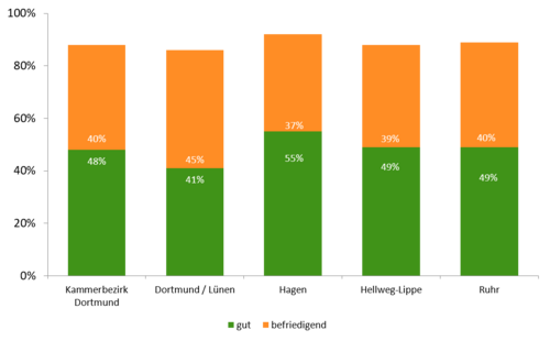 Vergleicht man innerhalb des Kammerbezirks Dortmund die vier Bezirke der Kreishandwerkerschaften miteinander, ergibt sich folgendes Bild: