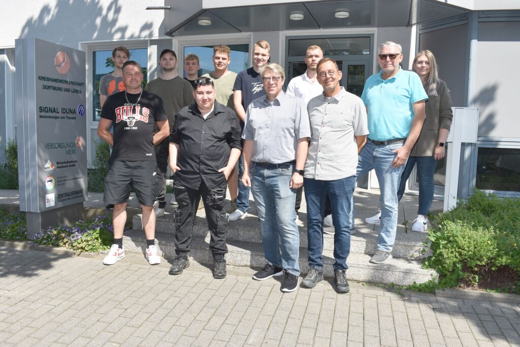 Im Rahmen einer Feierstunde hat die Innung für Metall- und Kunststofftechnik Dortmund und Lünen die erfolgreichen Prüflinge der Sommergesellenprüfung 2023 geehrt. Insgesamt 10 Absolventen der Ausbildungsberufe Metallbauer, Metallbearbeiter, Feinwerkmechaniker und Karosserie- und Fahrzeugbaumechaniker bekamen am 16. Juni im Sitzungszimmer der Kreishandwerkerschaft Dortmund und Lünen ihre Zeugnisse überreicht. Innungsgeschäftsführer Volker Walters würdigte die Prüfungsleistungen der frischgebackenen Gesellen und überbrachte die herzlichen Glückwünsche der Innung und der Kreishandwerkerschaft. „Sie halten mit diesem Zeugnis den Schlüssel für Ihre Karriere in der Hand“, gab Obermeister Dipl.-Ing. Christian Sprenger den jungen Handwerkern mit auf den Weg. „Im Handwerk lässt sich Karriere machen, denn Sie werden als Fachkräfte dringend gebraucht und viele Betriebe suchen in den kommenden Jahren Nachfolger. Bessere Chancen gibt es nirgendwo.“ Im Anschluss an die Zeugnisübergabe lud die Innung die erfolgreichen Prüflinge zu einem standesgemäßen Mittagessen ein.