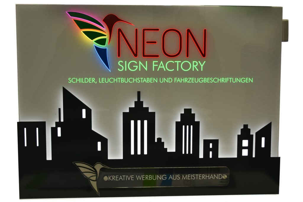 Keine leichte Aufgabe hatte in diesem Jahr die Jury des Zentralverbands Schild- und Lichtreklame bei der Bewertung der besten Gesellenstücke im „Praktischen Leistungswettbewerb des Handwerks“. Arbeiten aus insgesamt sieben Bundesländern – allesamt Landessieger – waren in Dortmund eingetroffen und mussten fachlich begutachtet werden. Die Aufgabe der Sommergesellenprüfung war dabei besonders schwer, sollte doch unter dem Motto „Neon Sign Factory“ eine Außenwerbung für ein Unternehmen der eigenen Branche gestaltet werden. Zur fachlichen Beurteilung der dreiköpfigen Jury gehörten die Werbewirksamkeit der Arbeit, der Schwierigkeitsgrad der Umsetzung, die Sorgfalt der Bearbeitung, die Materialauswahl und die Form- und Farbgebung. Dazu hatte die Jury viel Fachkompetenz aufzubieten mit der Vorstandsvorsitzenden des ZVSL Martina Gralki-Brosch, dem ZVSL-Bildungsausschussmitglied Markus Michaelis sowie dem Obermeister der Schilder- und Lichtreklamehersteller-Innung für die Regierungsbezirke Arnsberg und Münster, Klaus Bellen. Gemeinsam unterzogen sie die Werkstücke in den Räumlichkeiten des Handwerks in Dortmund-Körne einer genauen Prüfung.
