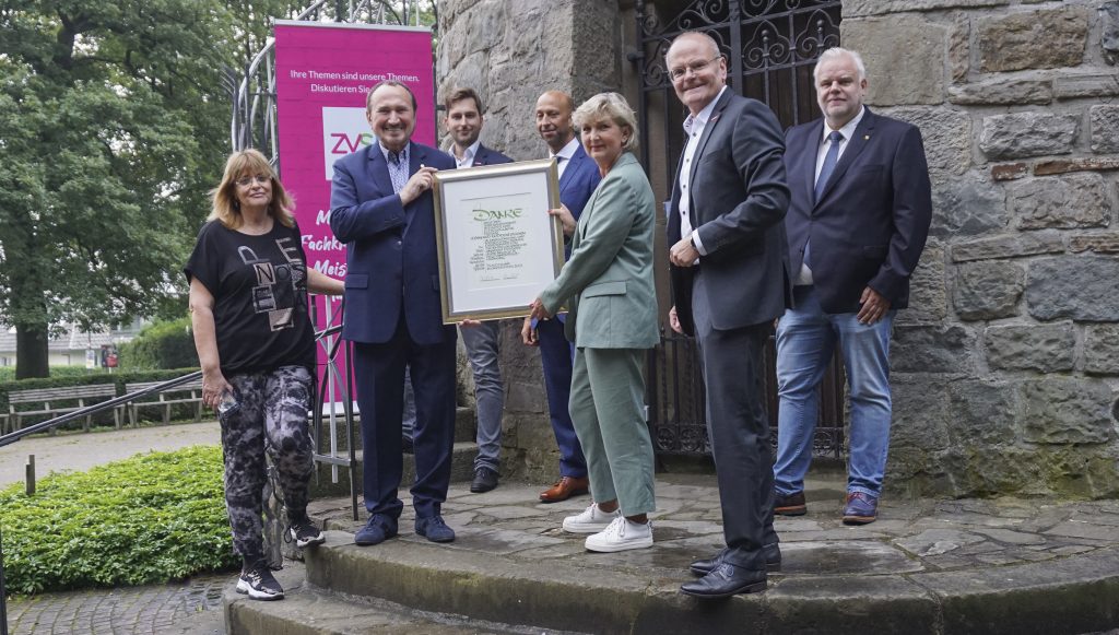 Manfred Todtenhausen (FDP), Bundestagsabgeordneter aus Wuppertal, ist mit der Goldenen Ehrennadel des Zentralverbands Schilder und Lichtreklame (ZVSL), Bundesinnungsverband der Schilder- und Lichtreklamehersteller, ausgezeichnet worden. Martina Gralki-Brosch, Präsidentin des Verbands und Bundesinnungsmeisterin, überreichte die Auszeichnung bei einem gemeinsamen Treffen mit Manfred Todtenhausen in seinem Heimatort Wuppertal im Beisein weiterer Vertreter des Handwerks. Der selbstständige Elektromeister, der seit Oktober 2017 wieder Mitglied des Deutschen Bundestages ist, hatte sich als Mitglied im Ausschuss für Wirtschaft und Energie sowie Obmann und Sprecher der FDP-Fraktion im Petitionsausschuss für die Rückkehr der Schilder- und Lichtreklameherstellerhandwerks zur Meisterpflicht stark gemacht und dabei auch auf die Bedeutung für den Gefahren- und Verbraucherschutz hingewiesen. „Ihre Treue zum Handwerk und Ihre Überzeugungskraft haben uns an entscheidender Stelle geholfen ”, so Martina Gralki-Brosch in ihrer Ansprache. „Sie haben als Fürsprecher unseres Anliegens mit dazu beigetragen, Zweifler an der Rückkehr zur Meisterpflicht zu überzeugen. Der Dank unserer Betriebe, aber auch der Dank vieler Auszubildender und Kunden, die sich nun wieder auf die meisterlichen Leistungen unserer Betriebe verlassen können, ist Ihnen gewiss.”