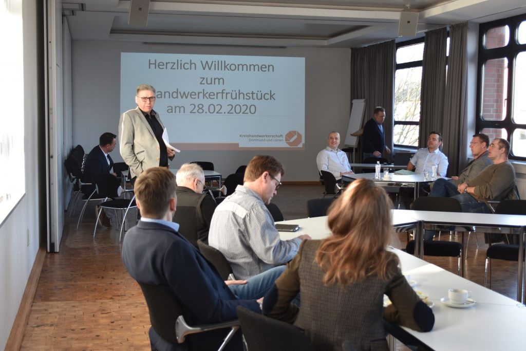 Teilhabechancengesetz und betriebliche Altersvorsorge standen im Mittelpunkt des Handwerkerfrühstücks an der Langen Reihe / Versorgungswerk der Kreishandwerkerschaft Dortmund und Lünen lud Innungsbetriebe zu Vorträgen bei Kaffee und Brötchen