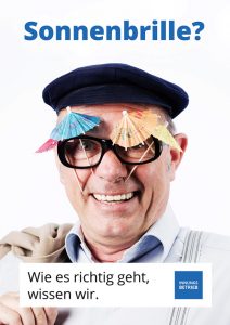 Zu den Themen „Gleitsicht“, „Sehtest“ ab November sowie „Sonnenbrille“ und“ Gleitsicht“ (im Frühjahr 2017) liefert er nicht nur Poster in typischer Knebel-Manier, sondern ab Mitte November auch Hörfunk-Spots in WDR 2 und WDR 4, in denen er in seiner unverkennbaren Art und Weise dem Hörer erläutert, warum gutes Sehen so wichtig ist und dass Innungsaugenoptiker hier die Anlaufstelle Nr. 1 sind.