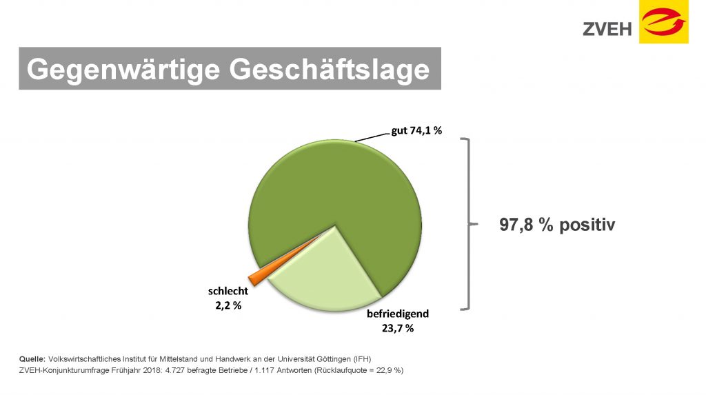 * Die Konjunkturumfrage wurde im Auftrag des ZVEH im Frühjahr 2018 vom Volkswirtschaftlichen Institut für Mittelstand und Handwerk an der Universität Göttingen durchgeführt.