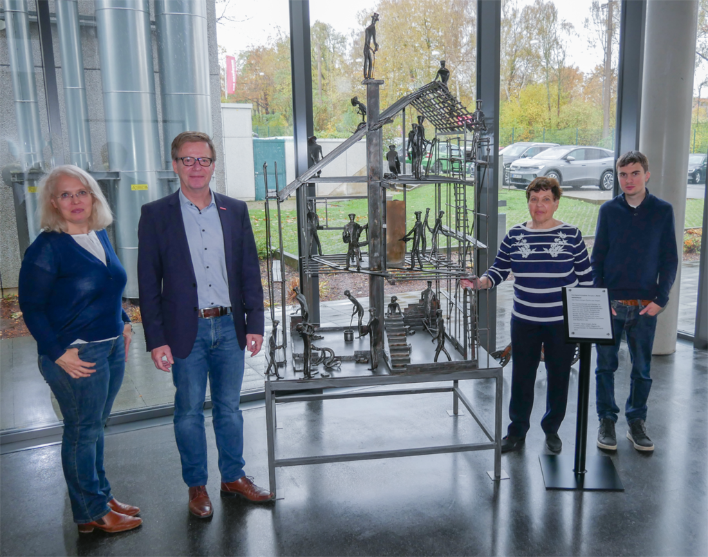 Dortmund. Ob Schornsteinfeger, Zimmerer oder Maurer – die handgeschmiedete Skulptur „Handwerkerhaus“ von Hans-Jürgen Zyche aus Hagen bildet eine Vielzahl von handwerklichen Berufen ab. Das Kunstwerk des 2021 verstorbenen Kunstschmieds und Meisters im Metallbauerhandwerk hat nun im Foyer der Handwerkskammer (HWK) Dortmund seinen neuen Platz gefunden.
