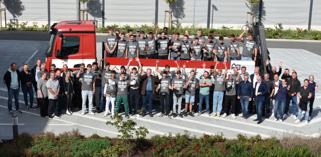 Informationen aus erster Hand rund um die Ausbildung gab es am Freitag für 45 neue Auszubildende im Dachdecker-Handwerk. In den neuen Räumen der Dachdecker-Einkaufsgenossenschaft DEG Dach-Fassade-Holz eG auf dem ehemaligen Gelände der Westfalenhütte begrüßte Obermeister Dirk Sindermann die Berufsstarter sehr herzlich: „Willkommen im Dachdecker-Handwerk, in einem der schönsten Berufe der Welt. Sie haben die richtige Entscheidung getroffen, denn unser Beruf ist krisensicher und als künftige Fachleute werden Sie dringend gebraucht. Sie sind unsere ‚Superhelden‘“. Dazu bekamen die neuen Auszubildenden als Geschenk der Innung T-Shirts mit dem Aufdruck „Dachdecker, weil Superheld keine offizielle Berufsbezeichnung ist“ überreicht. Ein herzliches Willkommen und motivierende Worte zum Start ins Berufsleben gab es auch von Andreas Hauf, Vorstand der gastgebenden DEG Dach-Fassade-Holz eG und Hans Heinrich Stanik, dem Bildungsgangleiter beim Dortmunder Fritz-Henßler-Berufskolleg.