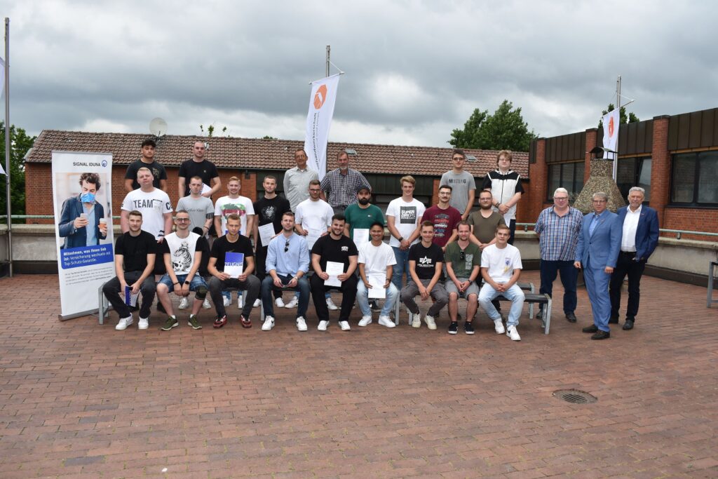 Nach zwei Jahren Corona-Pause hat die Innung für Metall- und Kunststofftechnik Dortmund und Lünen wieder mit einer Feierstunde ihre erfolgreichen Prüflinge geehrt. Eingeladen waren 18 Auszubildende der Sommergesellenprüfung und 49 Auszubildende der Wintergesellenprüfung, also insgesamt 67 Absolventen der Ausbildungsberufe Metallbauer, Metallbearbeiter, Feinwerkmechaniker und Karosserie- und Fahrzeugbaumechaniker. Sie bekamen am 24. Juni im Ausbildungszentrum Bau in Dortmund-Körne ihre Zeugnisse.