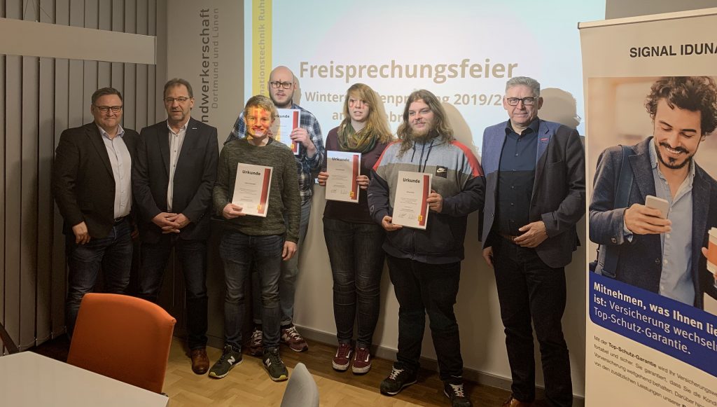Vorstand der Innung für Informationstechnik Ruhr entlässt sieben Auszubildende in den Gesellenstand