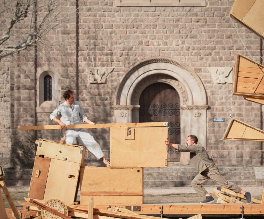 Die Darbietung zeigt, wie zwei Handwerker aus einer Vielzahl schwerer Kisten einen riesigen Bogen entstehen lassen – nur mit ihren Händen und einigen wenigen Werkzeugen wie Hebel, Flaschenzug, Rad. Die Methoden dazu sind schon seit Jahrhunderten überliefert und die Handwerker – oder sind es Künstler? – wollen dieses wertvolle Wissen erlebbar machen, das sich in einigen Jahrhunderten vom Handwerk zum Kunsthandwerk und nun zur Kunst wandelt. Ganz so, als ob ein Großvater seine Traditionen an seine Enkel weitergibt. Geschicklichkeit, Einfallsreichtum und die Verwendung uralter Technologie sind hierfür die Schlüssel. Das handwerkliche Können spielt eine wesentliche Rolle und wird zum Hauptdarsteller. Manolo Alcántara kreiert seine Shows aus Intuition und Neugier und verzaubert visuell durch die innovative Mischung von Handwerk und Kunst.