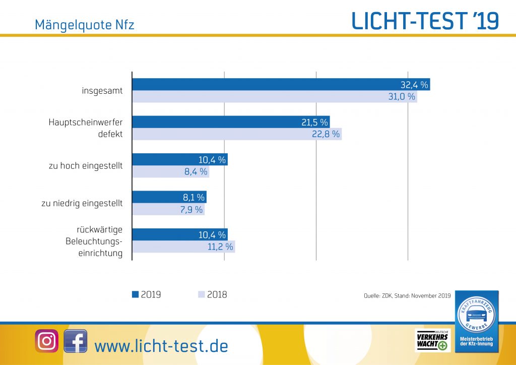 Den Licht-Test gibt es seit 1956, er wird gemeinsam von ZDK und DVW organisiert. Weil die Mängelquote im Bereich der Nutzfahrzeuge anhaltend hoch ist, sollten die Fahrer das ganze Jahr auf die Beleuchtung achten – nicht nur im Oktober. In Nutzfahrzeug-Meisterbetrieben und speziell ausgerüsteten Werkstätten der Prüforganisationen können Fahrer die Lichtanlage prüfen und Mängel beheben lassen.