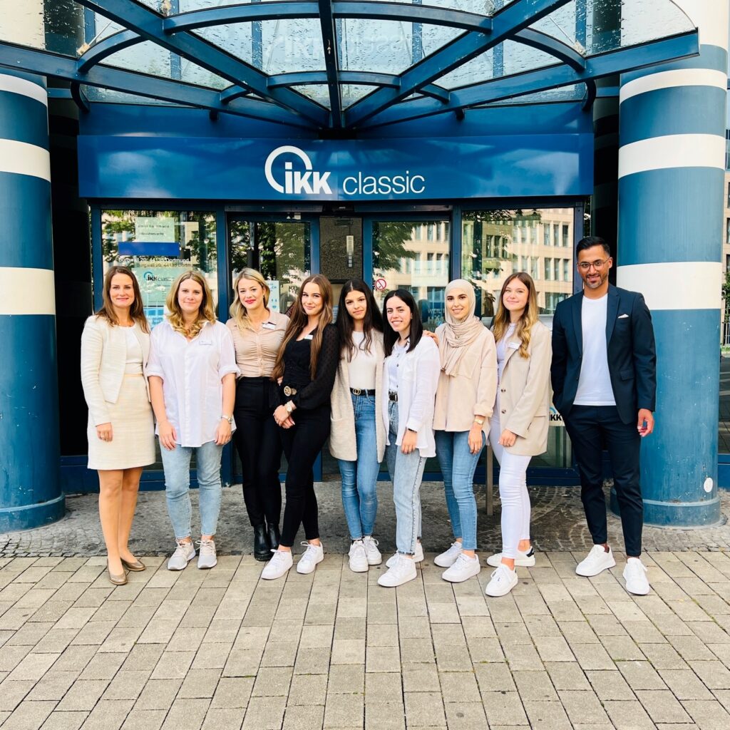(Dortmund) Asmae Akrifou, Ebru Cetin, Kathrin Knobloch, Marie Siebald und Sofia Wojtas haben am 1. August ihre Ausbildungen zu „Sofas“, also Sozialversicherungsfachangestellten, bei der IKK classic in der Regionaldirektion Dortmund begonnen. Auch Johanna Kattenbeck und Celina Planz gehören zu den Berufsstarterinnen. Sie nahmen ihre Ausbildungen zu Kauffrauen im Gesundheitswesen, kurz „KiG“ genannt, auf. Regionalgeschäftsführerin Claudia Baumeister, die selbst vor genau 25 Jahren ihre Ausbildung bei der IKK begann, begrüßte den Nachwuchs und wünschte allen einen erfolgreichen Start in den neuen Lebensabschnitt.