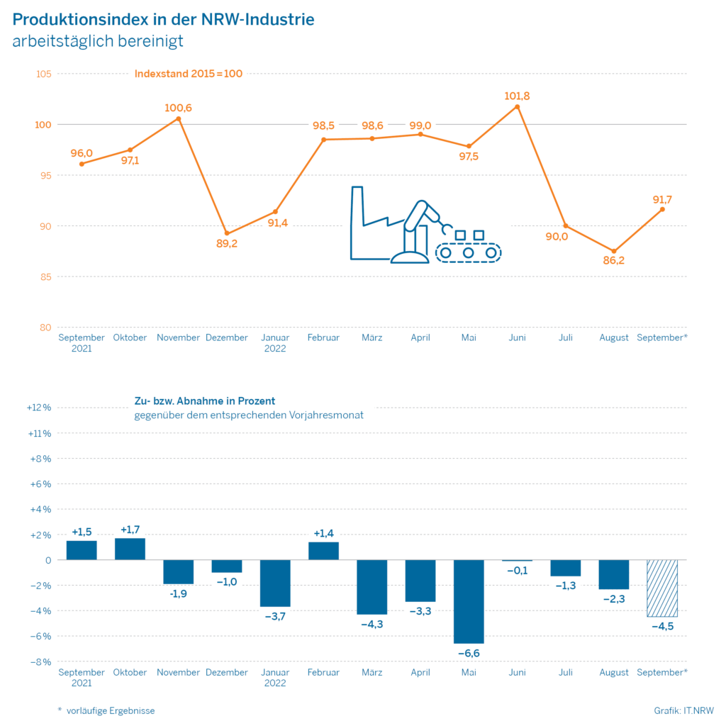 die Produktion im September 2022 in allen Bereichen negativ: Der Output an