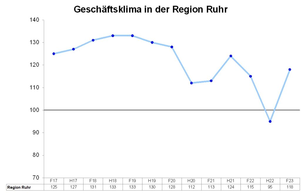 Das Handwerk in der Region Ruhr hat sich stabilisiert und zeigt sich trotz eines nach wie vor angespannten gesamtwirtschaftlichen Umfelds robust. Das ist die zentrale Botschaft der aktuellen Konjunkturumfrage der drei Ruhr-Handwerkskammern Dortmund, Düsseldorf und Münster. Der Geschäftsklimaindex steigt im Vergleich zum Herbst des Vorjahres um 23 Punkte und liegt nun bei einem Wert von 118. 87 Prozent aller Betriebe bewerten ihre aktuelle Geschäftslage als gut oder befriedigend.