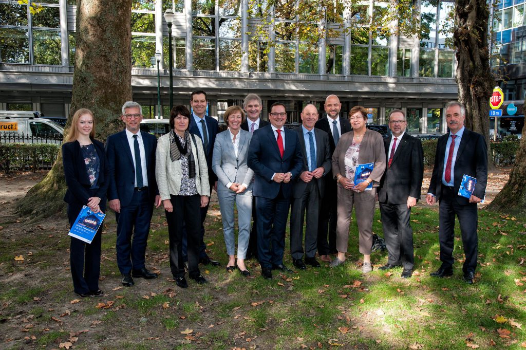 Brüssel/Metropole Ruhr (idr). Die Oberbürgermeister und Landräte der Metropole Ruhr sowie die Direktorin des Regionalverbandes Ruhr (RVR) sind gestern (18. Oktober) zum EU-Ruhr-Dialog nach Brüssel gereist, um sich in der Diskussion zur Zukunft der europäischen Kohäsionspolitik mit einem eigenen Positionspapier zu Wort zu melden. Darin setzen sich die politischen Spitzenvertreter des Ruhrgebiets für die Fortführung der Kohäsionspolitik als wichtigstes Instrument der Investitionspolitik der EU ein. Die von der Europäischen Gemeinschaft geförderten Maßnahmen seien Teil einer „Vor-Ort-Politik“, die eine nachhaltige Verbindung zwischen der EU in Brüssel und den Städten und Kreisen in den Regionen schafft. Die Ruhrgebietsvertreter setzen auch auf eine gleichberechtigte Förderung von städtischen und ländlichen Gebieten. Dies sei insbesondere für die Metropole Ruhr als polyzentrische Region von Bedeutung, in der der Stadt-Land-Mix stark ausgeprägt ist, so die Delegation. In Brüssel diskutierte die EU-Delegation u.a. mit EU-Kommissar Günter Oettinger.