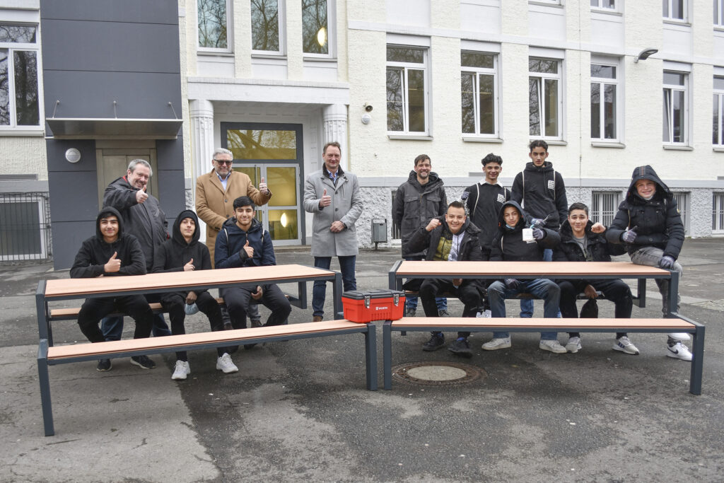 Schülerinnen und Schüler der Anne-Frank-Gesamtschule übergaben selbst gebaute Bänke für den Schulhof / Klasse 9 erledigte handwerkliche Arbeiten in einem gemeinsamen Projekt mit dem Bildungskreises Handwerk e.V. im Rahmen des Ausbildungspakts „Starke Nordstadt”