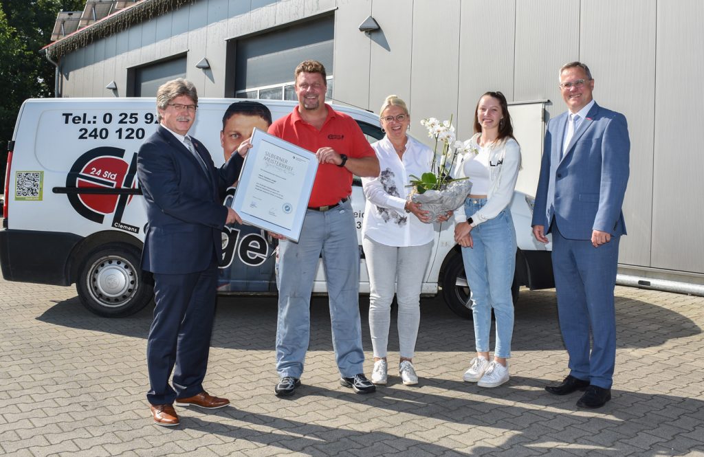 Herzliche Glückwünsche anlässlich des 25-jährigen Meisterjubiläums gab es am Freitag für den Selmer Elektroinstallateurmeister Clemens Lange. Der Obermeister der Innung für Elektrotechnik Dortmund und Lünen, Volker Conradi, und Geschäftsführer Joachim Susewind waren eigens aus Dortmund gekommen, um die Glückwünsche des Handwerks persönlich zu überbringen. Im Gepäck hatten sie neben Präsenten der Innung auch den Silbernen Meisterbrief, den die Vertreter des Handwerks dem Jubilar feierlich überreichten. „Sie haben es mit Fleiß und Können geschafft, sich einen eigenen Betrieb aufzubauen, der seit vielen Jahren erfolgreich in der Region etabliert ist“, gratulierte der Obermeister. „Wer seit so vielen Jahren am Markt ist, hat sich das Vertrauen seiner Kunden durch hohe Qualität verdient. Das zeichnet sie als Innungsbetrieb besonders aus. Wir wünschen Ihnen weiterhin viel Glück und Erfolg in Ihrem Handwerk.”