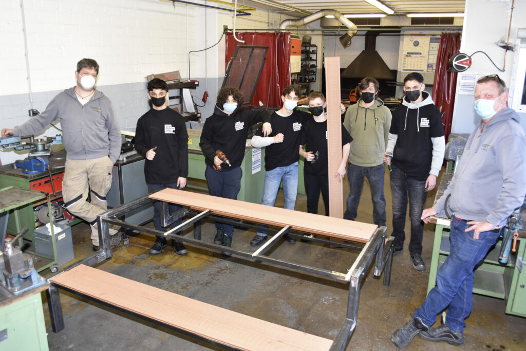 Messen, Schweißen, Sägen und Schrauben: Elf Schülerinnen und Schüler der Klasse 9 der Anne-Frank-Gesamtschule konnten jetzt in den Werkstätten des Bildungskreises Handwerk e.V. (BKH) in Dortmund -Körne ihr handwerkliches Geschick beweisen. Im Mittelpunkt des selbst geplanten Projekts „Workoutdoor” stand der professionelle Bau von zwei stabilen Sitzbankgarnituren für den eigenen Schulhof. Unter Anleitung der Ausbilder des BKH und begleitet von zwei Lehrern griffen die Schülerinnen und Schüler an zwei Projekttagen selbst zum Werkzeug und lernten auf diese Weise nebenbei handwerkliche Berufsbilder kennen. Vorausgegangen war der Aktion eine umfangreiche Planungsphase, bei der die Schülerinnen und Schüler unterschiedliche Sitzgelegenheiten in der Nordstadt erkundeten, Skizzen und technische Zeichnungen erstellten und unterstützt von der Schulleitung Kontakt mit dem Handwerk aufnahmen. „Wir sind als Bildungsträger der Kreishandwerkerschaft Dortmund und Lünen immer darum bemüht, jungen Menschen den Weg ins Handwerk zu ebnen”, erklärt dazu Volker Walters, Geschäftsführer des BKH. „Darum haben wir unsere Unterstützung gern zugesagt.” Geplant ist, Anfang April die fertigen Bänke an die Schule zu übergeben.