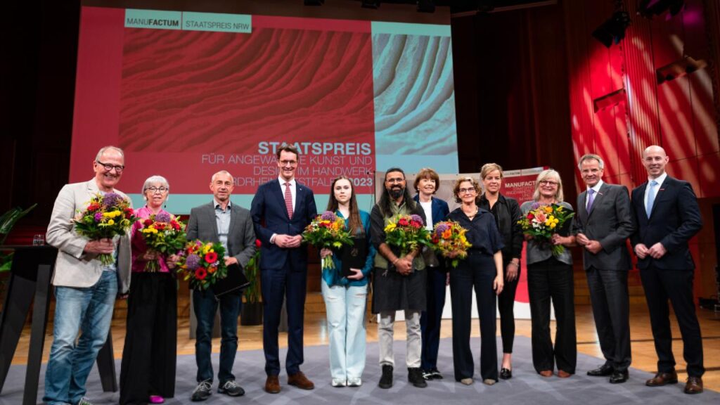 Sieben Gestalterinnen und Gestalter aus dem nordrhein-westfälischen Handwerk haben den Staatspreis MANUFACTUM erhalten. Ministerpräsident Hendrik Wüst und Wirtschaftsministerin Mona Neubaur übergaben den Staatspreis für angewandte Kunst und Design im Handwerk am 27. Mai 2023 in sechs Kategorien.