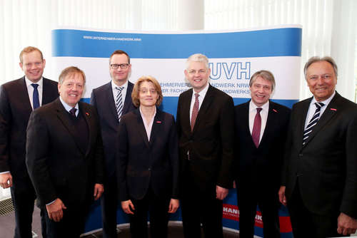 Vor dem Hintergrund der bevorstehenden Europawahl beschäftigte man sich u.a. mit der Frage, ob die handwerkliche Berufsqualifikation und duale Ausbildung im vereinten Europa weiter Bestand haben werden und wie sich Europa verändern würde, wenn sich die in vielen EU-Mitgliedsstaaten erstarkenden Populisten bei der Wahl durchsetzen sollten. UVH-Präsident Hans-Joachim Hering rief die Handwerksunternehmer in Nordrhein-Westfalen dazu auf, bei berechtigten Kritik das Projekt Europa nicht als Ganzes in Frage zu stellen und am 26. Mai zur Wahl zu gehen. Natürlich gebe es in Europa Demokratiedefizite und Bürokratieauswüchse, die man kritisieren müsse. Aus wirtschaftlicher Sicht würden aber tausende deutsche Unternehmen und Millionen Arbeitnehmerinnen und Arbeitnehmer tagtäglich von Europa profitieren.